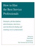 Overview In your contact center you've probably got a few highly motivated, energetic and enthusiastic reps. They know your products and services and have the skills to make every customer feel valued. Imagine what it would be like to have an entire department filled with reps like these. With a little help from How to Hire the Best Service Professionals you can. This book focuses on the essential tools you can use to formalize your process. Each chapter includes numerous samples of hiring forms, checklists and guidelines currently being used by companies in various industries, which you can customize for your own organization.